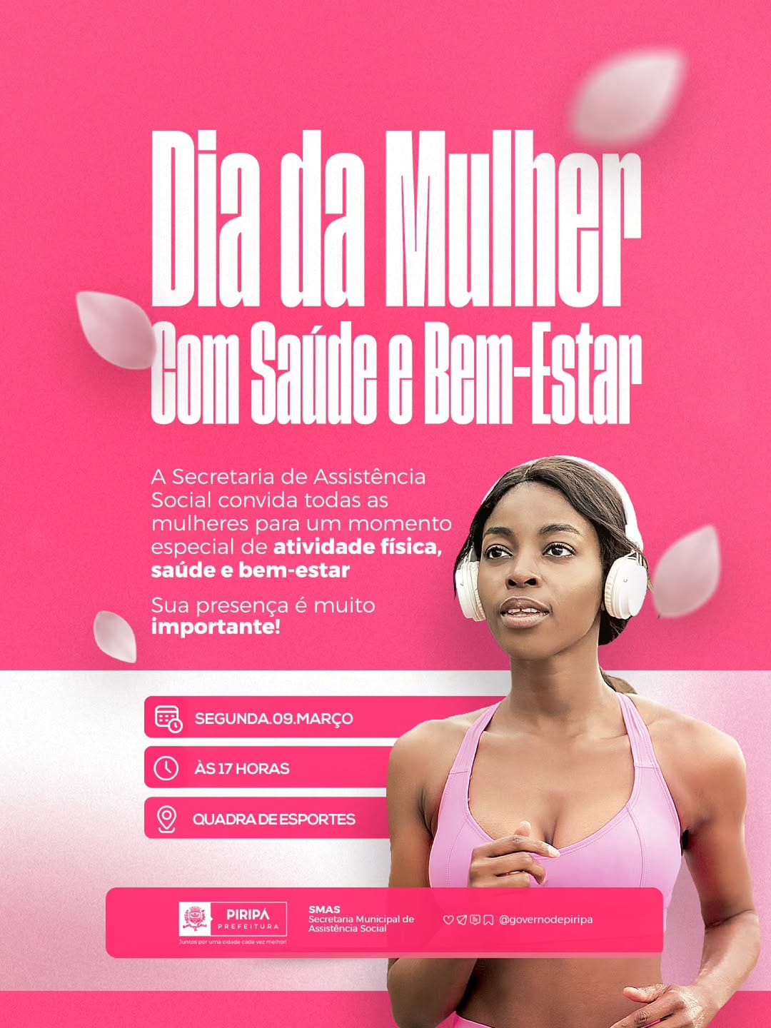 A Secretaria de Assistência Social convida todas as mulheres da comunidade a participarem desse momento especial de cuidado, movimento e celebração.