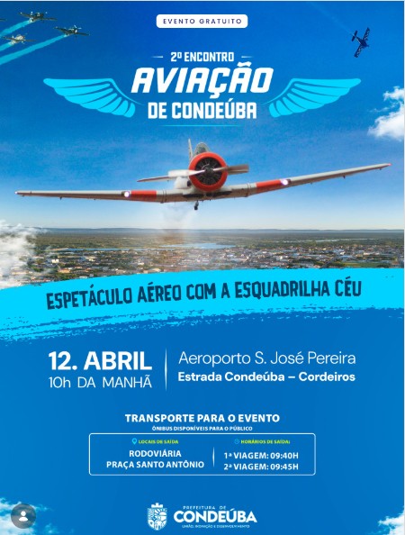 A programação terá início às 10h da manhã, no Aeroporto S. José Pereira, localizado na estrada que liga Condeúba ao município de Cordeiros. O evento é gratuito e aberto ao público, proporcionando acesso democrático a um espetáculo de grande porte.