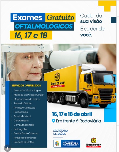 A Prefeitura de Condeúba, por meio da Secretaria Municipal de Saúde, está promovendo uma importante ação voltada ao cuidado com a saúde da visão: a oferta de exames oftalmológicos gratuitos para a população.