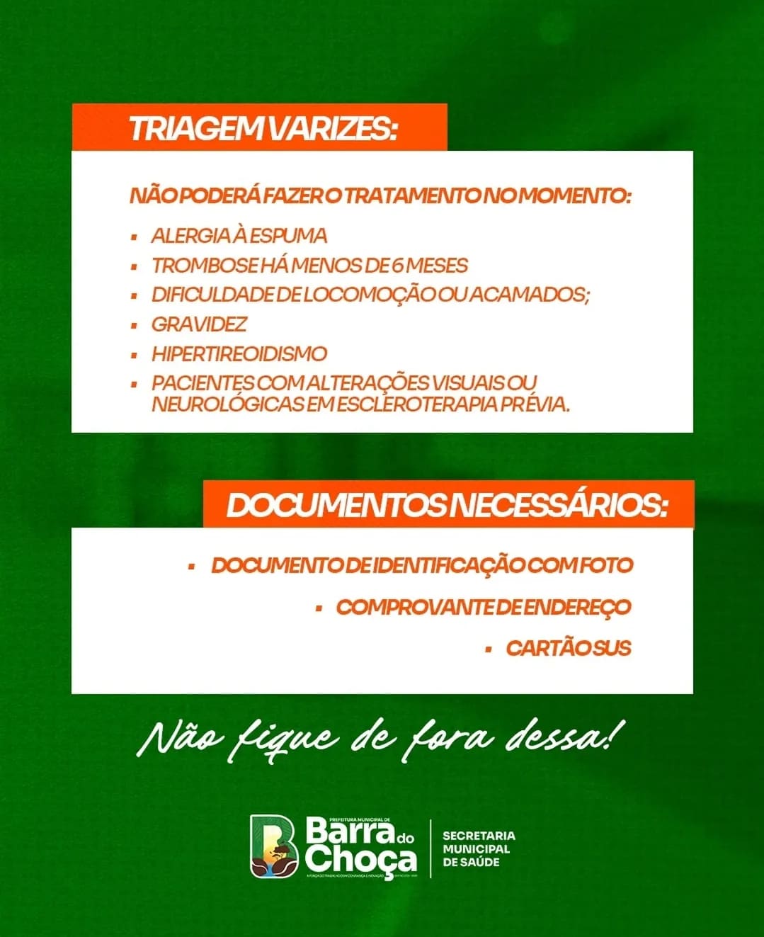 Prefeitura de Barra do Choça realiza triagem para escleroterapia no dia 22 de abril