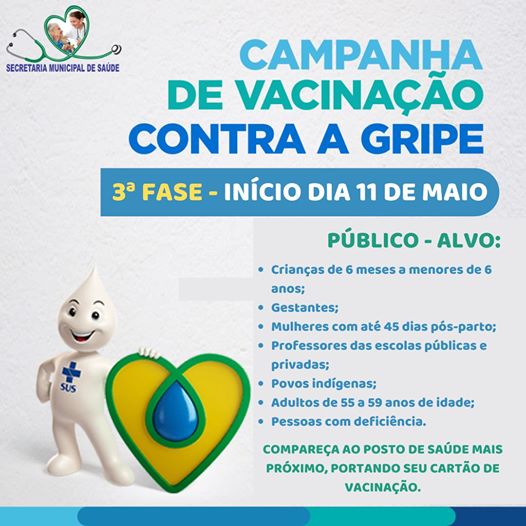 Apesar do início da terceira etapa da campanha, a Secretaria de Saúde comunica que continuará imunizando as pessoas que não se vacinaram nas outras etapas.