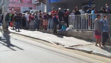 Extensa fila se forma por aqueles que esperam o auxílio emergencial em Vitória da Conquista