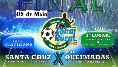 Na tarde do próximo domingo, 05, Queimadas x Santa Cruz decidirão o título do Campeonato de Futebol da Zona Rural…