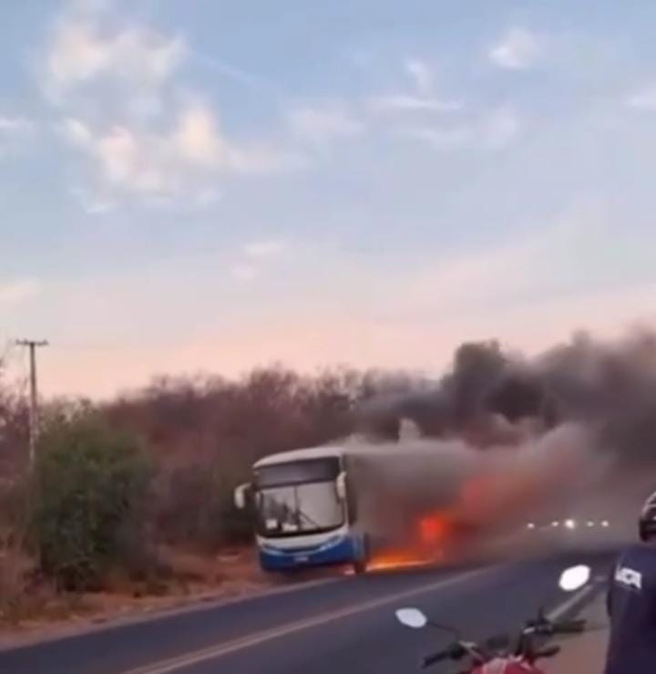 Ônibus da Novo Horizonte incêndia na BR-030 entre Guanambi e Caetité