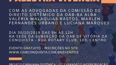 A OAB Subseção Vitória da Conquista receberá a Caravana Sistêmica com o evento “Direito Sistêmico – Palestra e Vivência”. A…