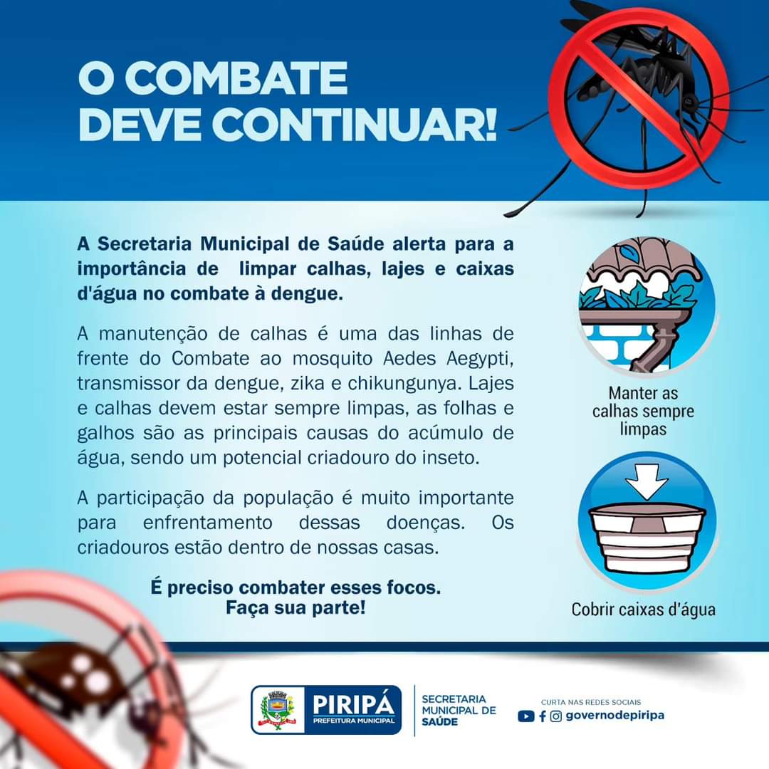 Piripá: Secretaria Municipal de Saúde alerta para a importância de limpar calhas, lajes e caixas d’água no combate à dengue