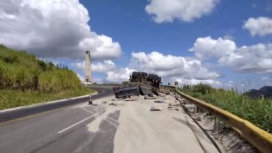 O motorista de um caminhão, que transportava uma carga de cimento, escapou ileso depois de capotar na BA-263, no trecho…