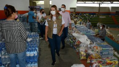 Prefeita visita central de doações, elogia organização do trabalho e agradece doações e apoio de voluntários
