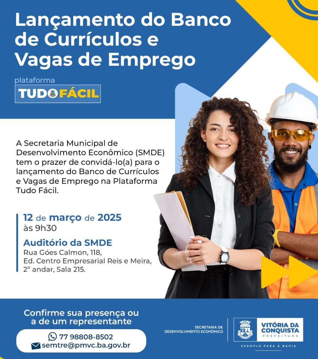SMDE lança Banco de Currículos e Vagas de Emprego pela Plataforma Tudo Fácil nesta quarta-feira, 12
